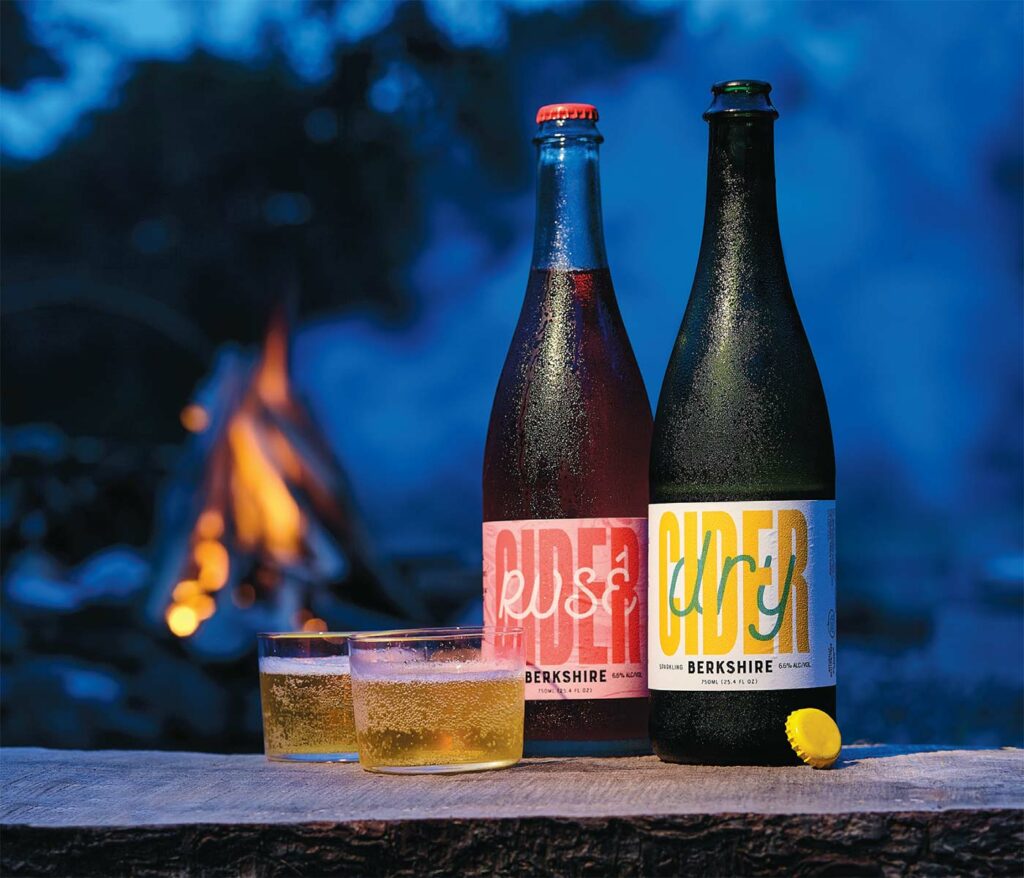 “Matt and Kat attract a much more evolved cider drinker—people who really know apples,” says David. While Hilltop’s ciders are sweeter and more playful (there’s even a coconut- lime-flavored JMash), Berkshire Cider Project’s offerings taste more like dry sparkling wine or champagne. Matt and Kat also partner with Berkshire cultural institutions such as Hancock Shaker Village, and other orchards such as Windy Hill in Stockbridge, to harvest their apples and create co-branded ciders.