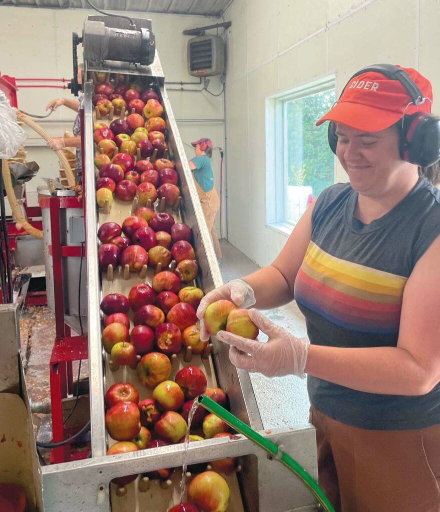 Caitlin Bunning sorts washed apples before they go to the grinder. Photo by Matt Brogan