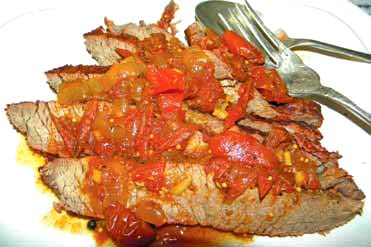 My own family brisket recipe (page 90) uses onion soup mix and Heinz Chili Sauce and Heinz Ketchup. Oops. Now that I am a seasoned Brisketeer, I am far more enlightened. So I have decided to keep my family but disown my brisket recipe. I’m replacing it with the one from Chris Kimball of Cook’s Illustrated (page 158.) So now I guess I’m part of Chris Kimball’s family. What can I say? With brisket, it’s all relative.