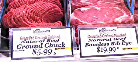 Mike Mazzeo of Mazzeo’s Meats in Guido’s Fresh Marketplace said among all his meat and poultry, only one farm, Painted Hills Natural Beef in Wheeler County, Oregon, guarantees that their grass-fed, grain-finished beef is GMO-free since they told him they grow all their own grain. However, the farm’s website has no mention of GMOs.